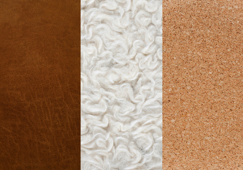Our wool is sourced from ethical farms that prioritize animal welfare and sustainable practices. Cork, a renewable and biodegradable material, is harvested without harming trees, making it a durable and eco-friendly choice. We also use leather from environmentally certified tanneries that adhere to responsible production methods.